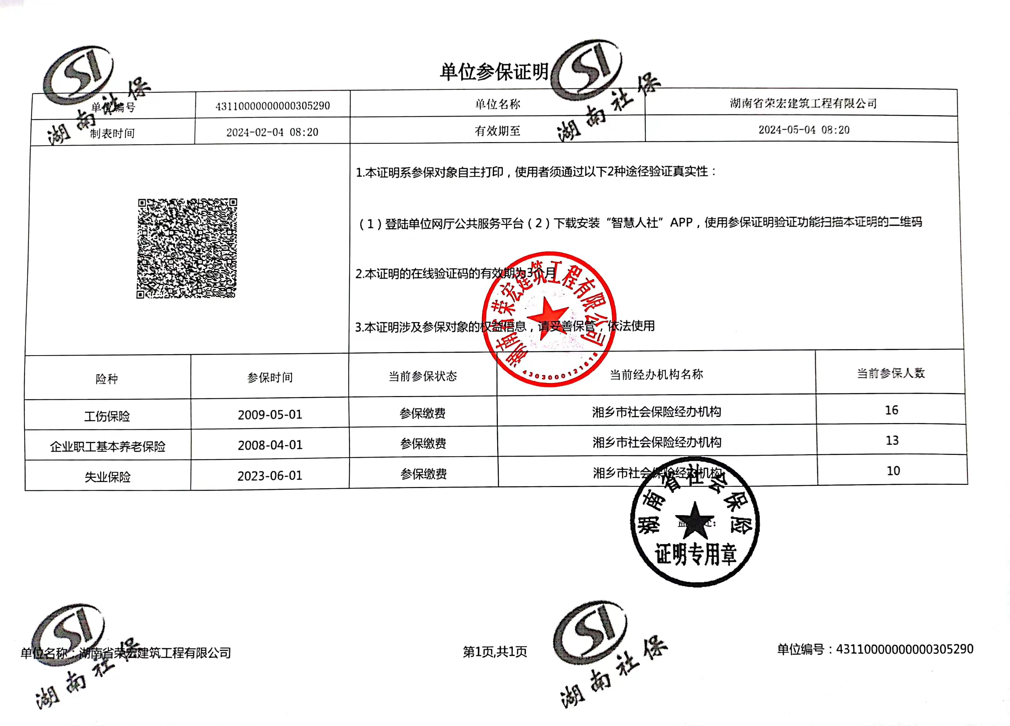 社保繳納證明: