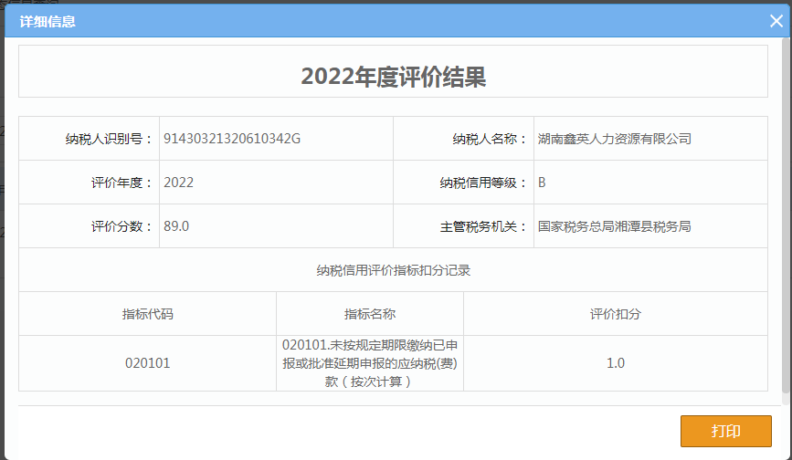 企業(yè)納稅信用等級報告: