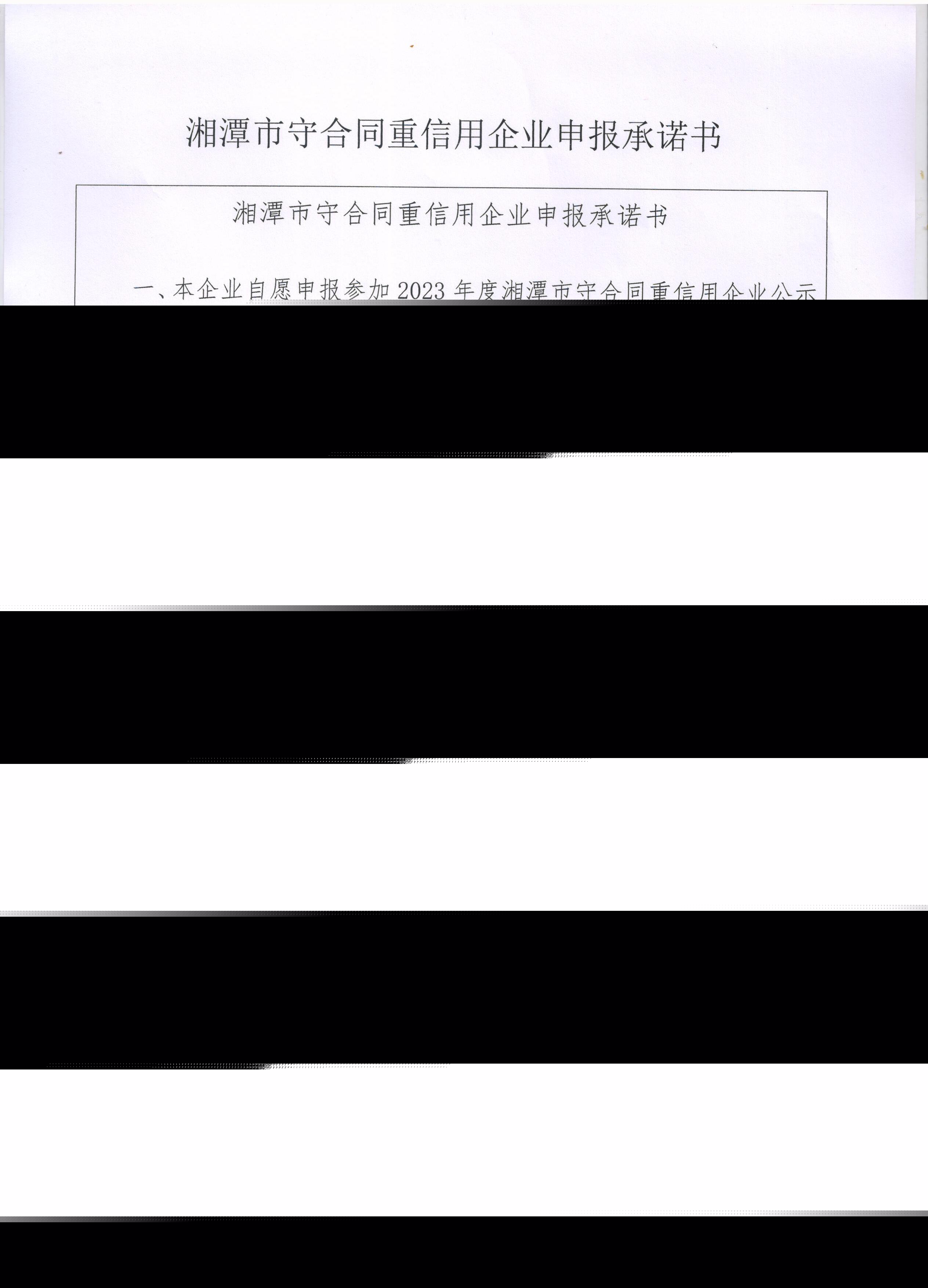 本企業(yè)根據(jù)《湘潭市守合同重信用企業(yè)申報(bào)規(guī)定》等編制 2023 年度企業(yè)信用報(bào)告書,并保證本報(bào)告書內(nèi)容真實(shí)、準(zhǔn)確、完整。